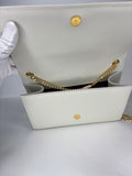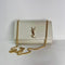 Flap-top with golden YSL logo medallion; snap closure.